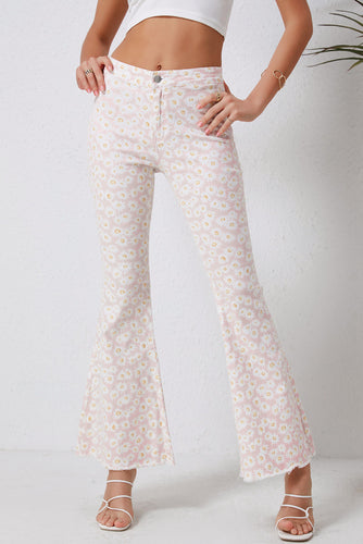 Pink Flare Leg High Waist Front Knot Casual Jeans