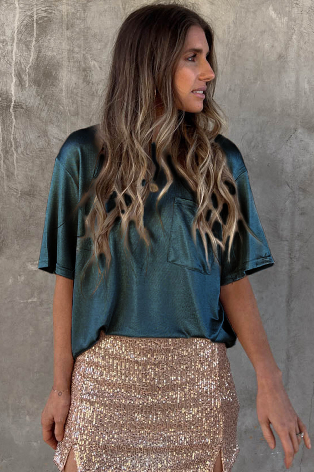 - The material of this slouchy top is a silky soft fabric with a slight sheen which is breathable and comfortable
