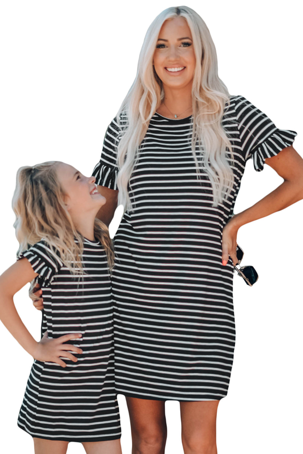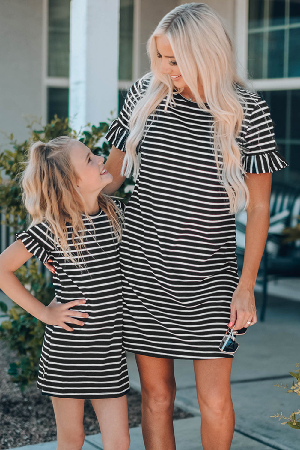 •This mini dress with striped print is very fashionable to create an envied parent-child look