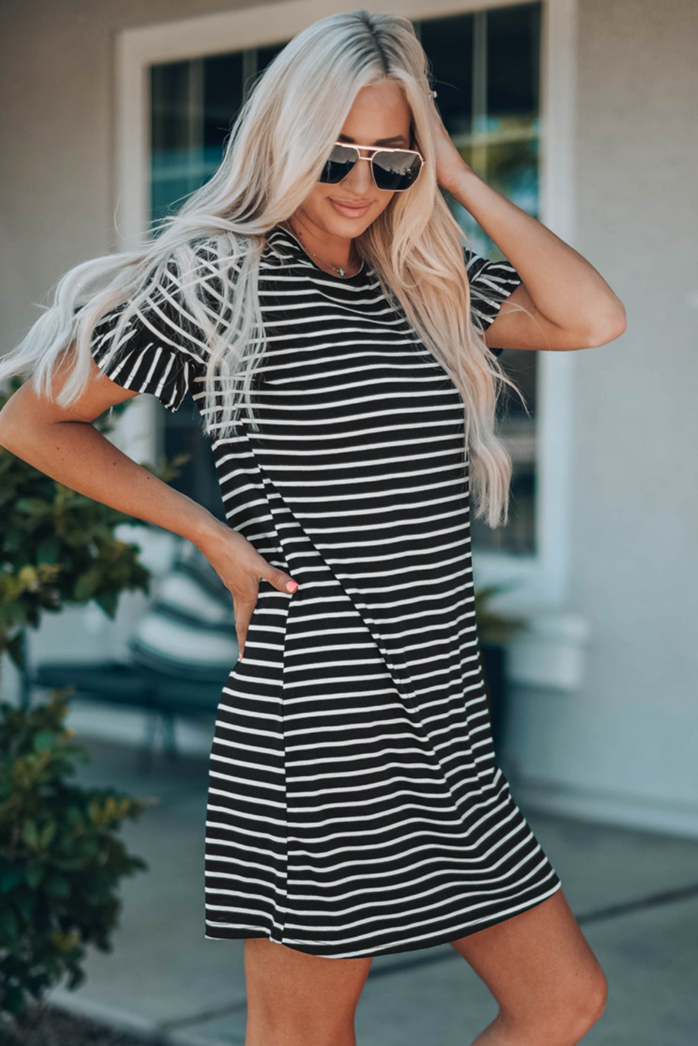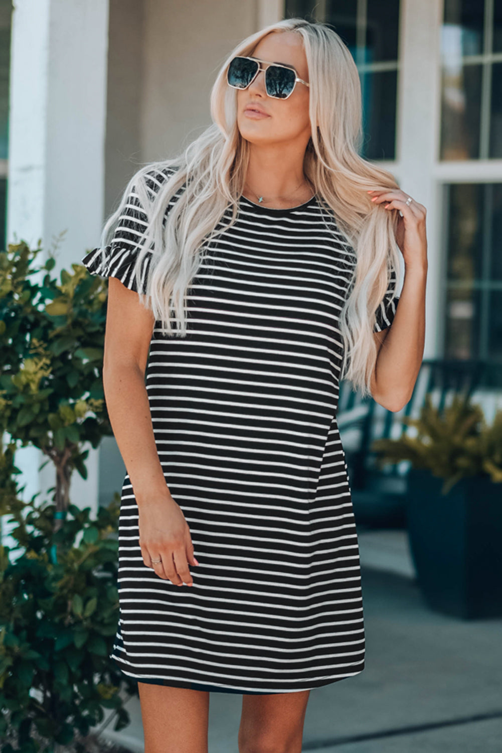 •Short dress with ruffled sleeve really looks very sweet and graceful
