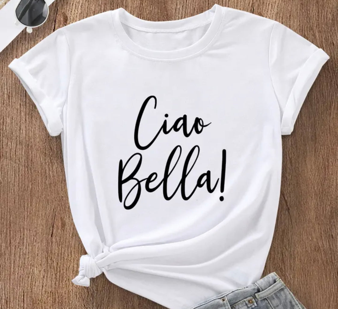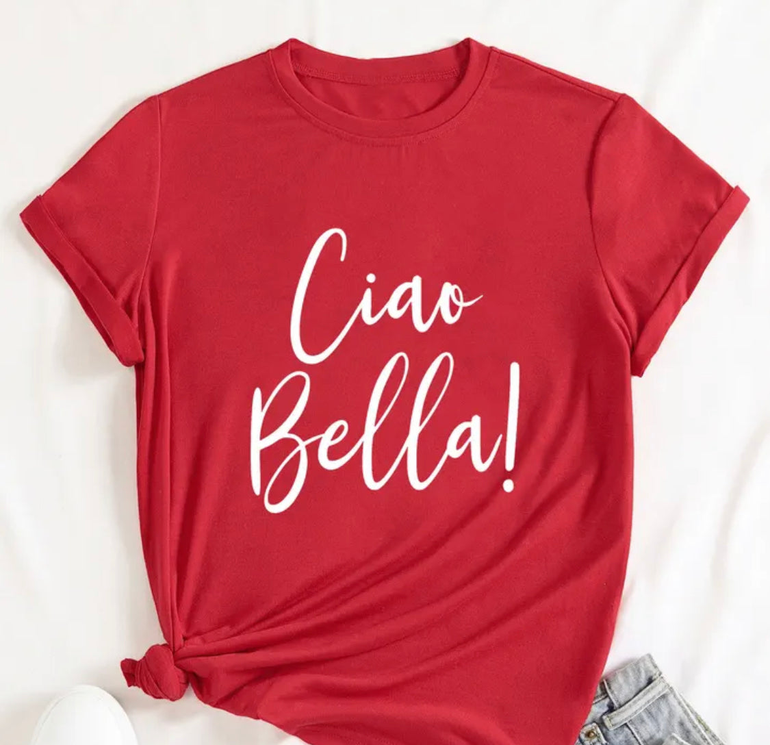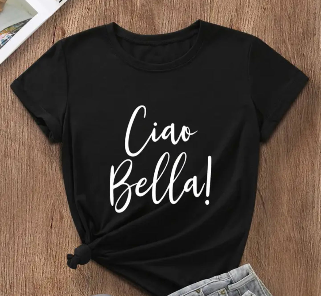 Ciao Bella Shirt... chose from green, white,red or black. Sizes small,Medium,large,XL,XXL, and XXXL