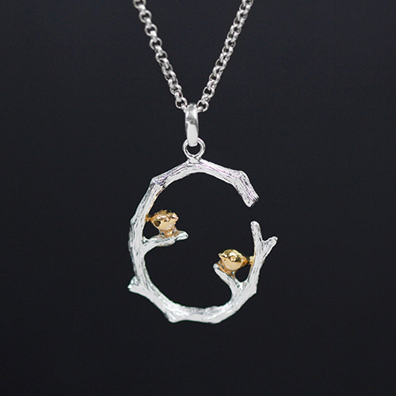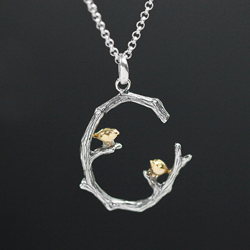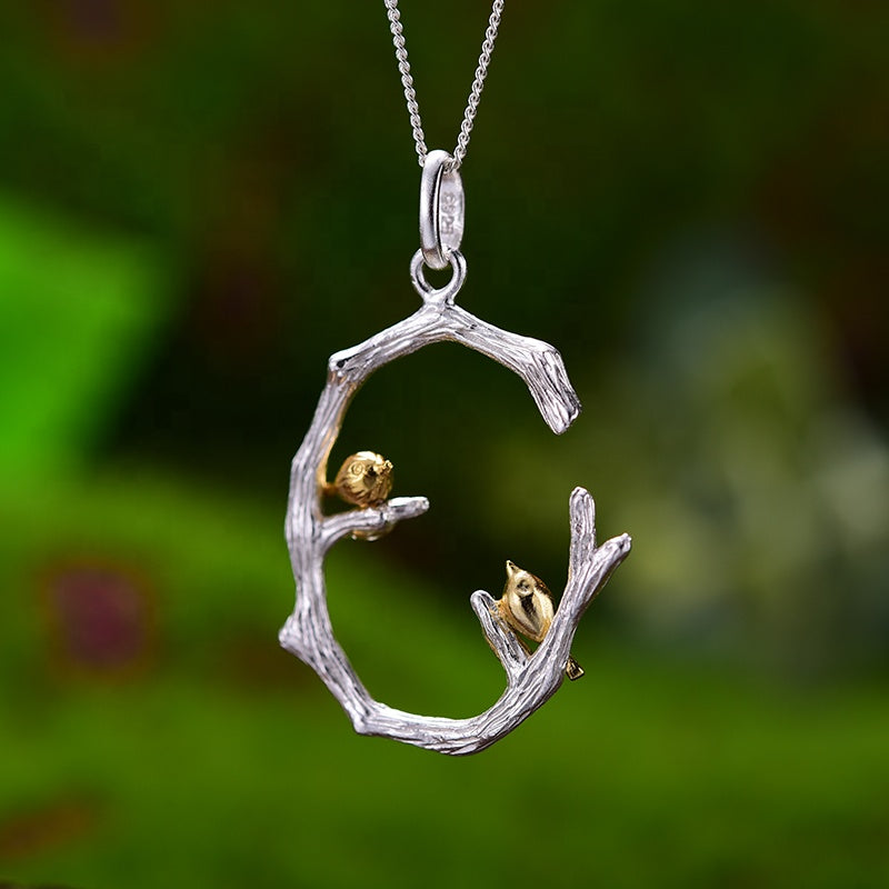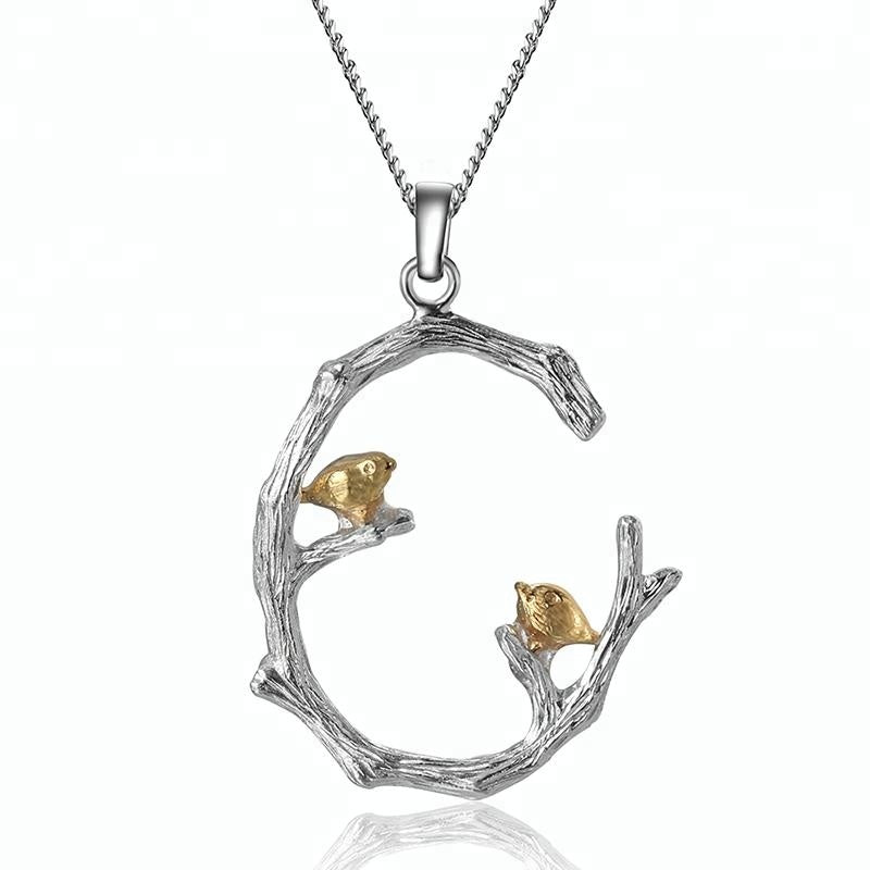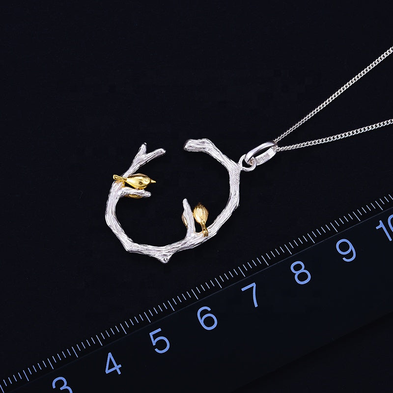 Creative Bird on Branch sterling silver pendant