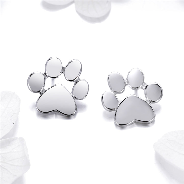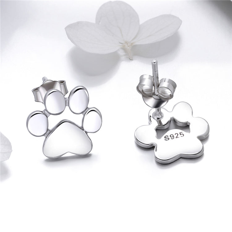 925 Sterling Silver Plain cute Animal Dog Cat Footprints Paw Stud Earrings for Women