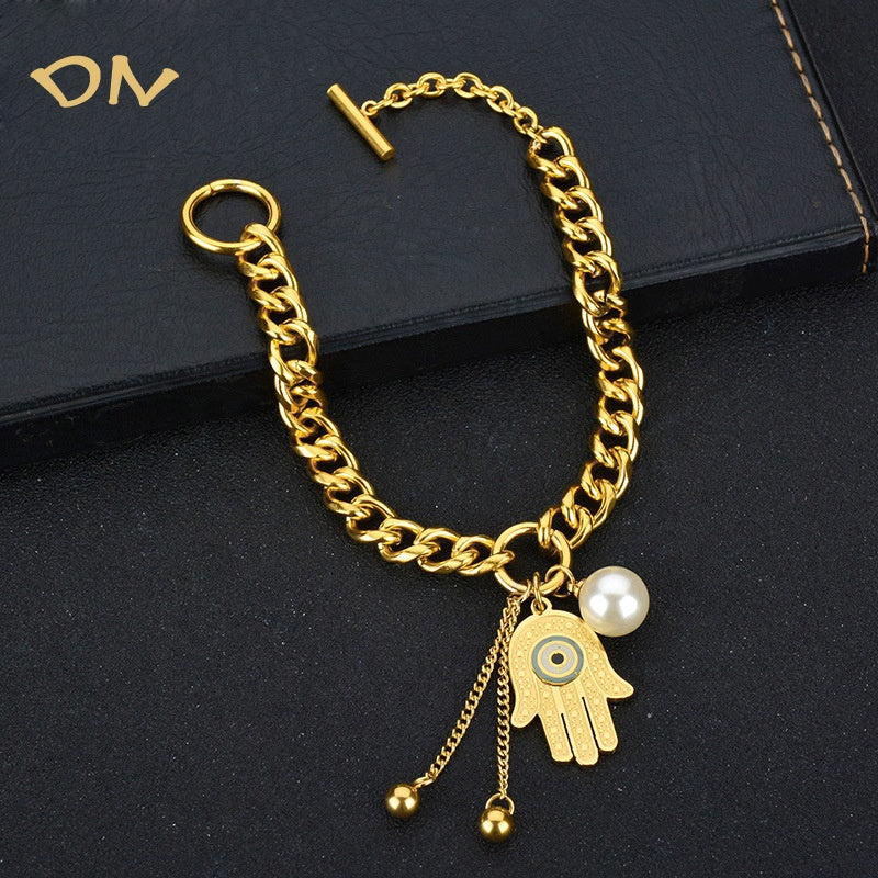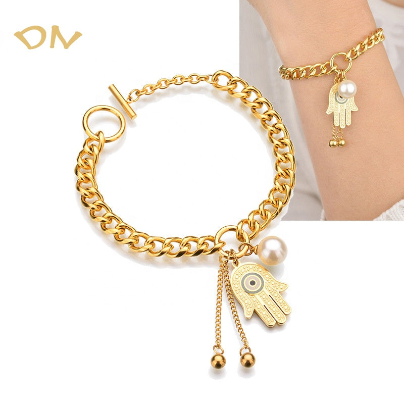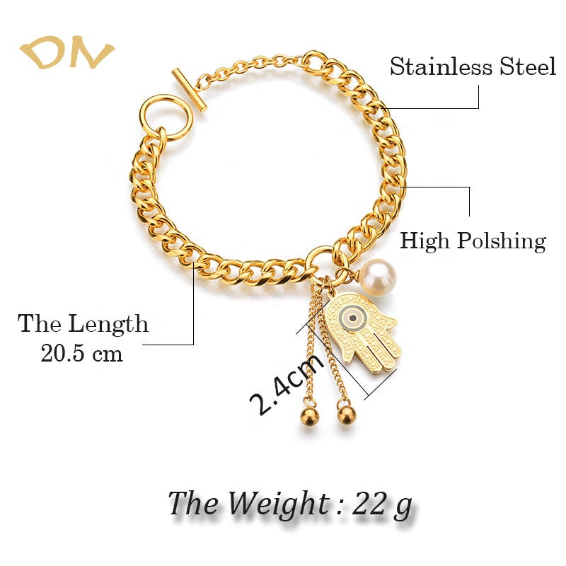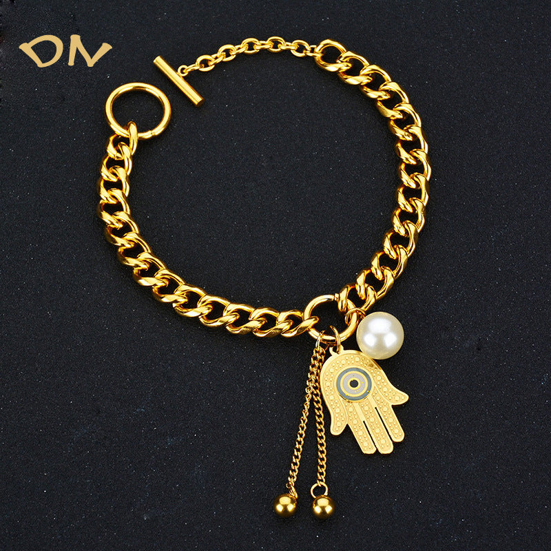 Dina Simple Gold Plated Women Evil Eyes Hamsa Hand Stainless Steel Bracelet With Dripping Oil For Unisex