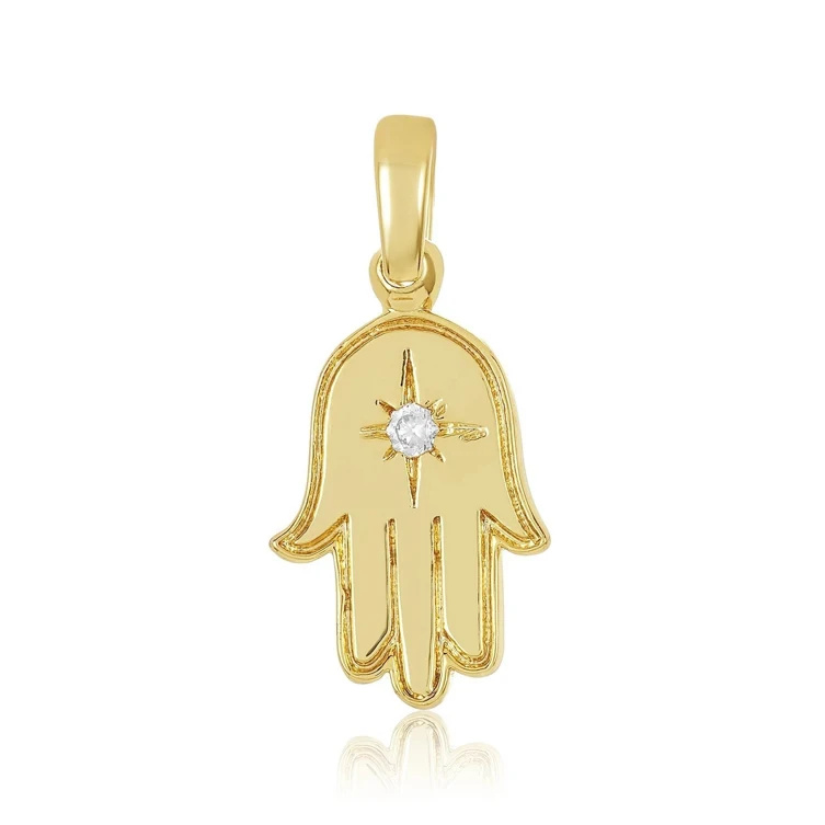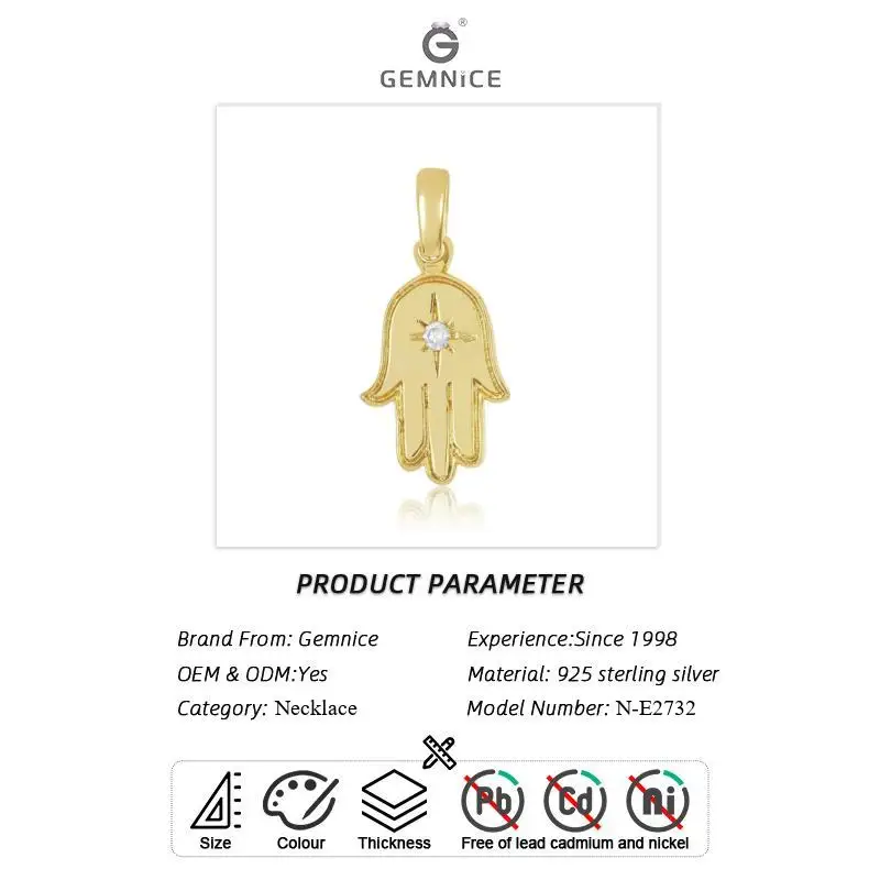 Gemnel 925 silver plated gold jewelry evil eye long chain fatima hand eye necklace real gold