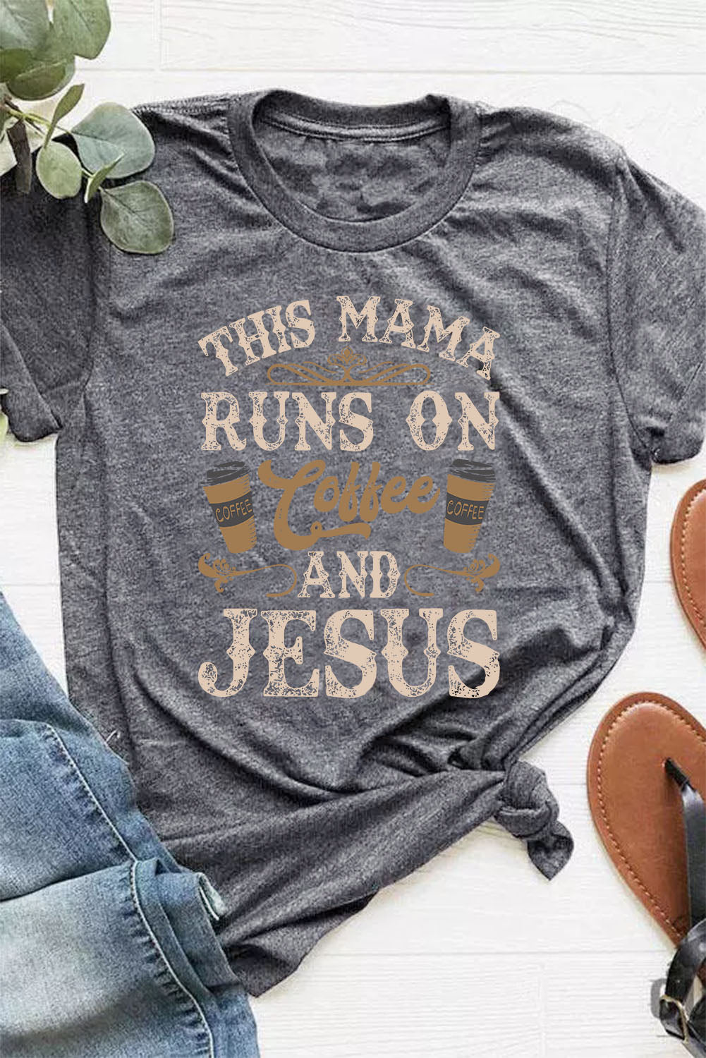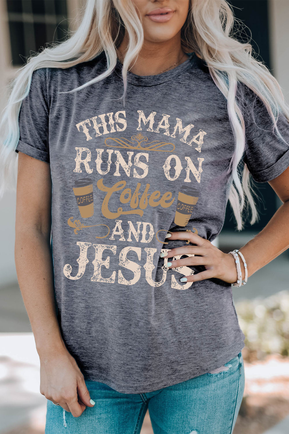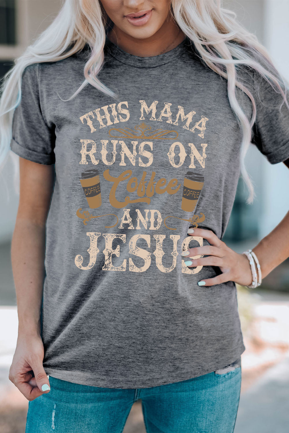 Gray Round Neck Letter Graphic Short Sleeve T-Shirt