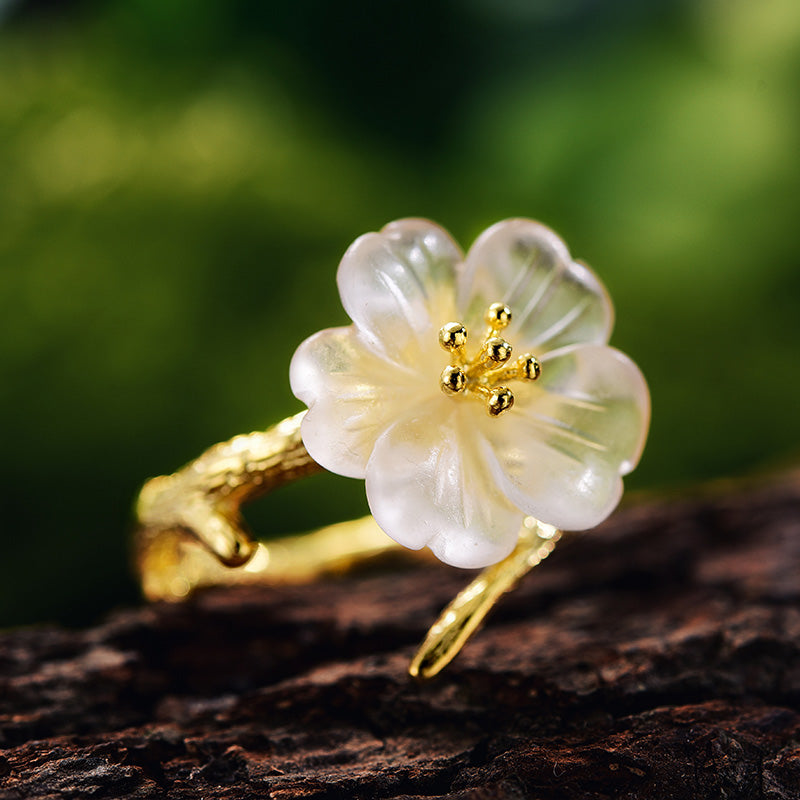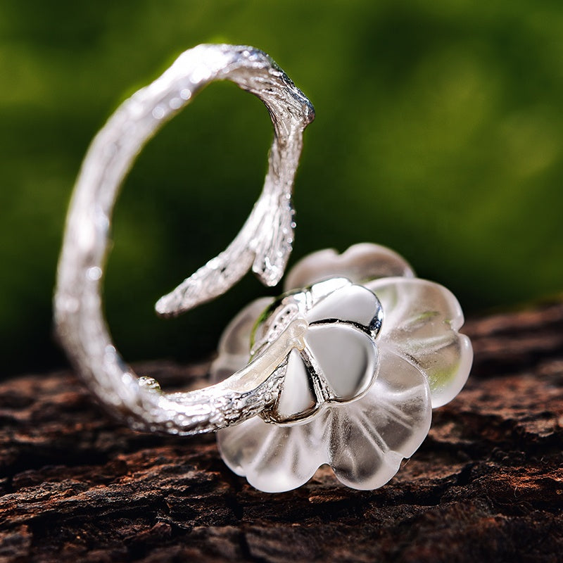 Handmade flower shaped silver jewelry ring