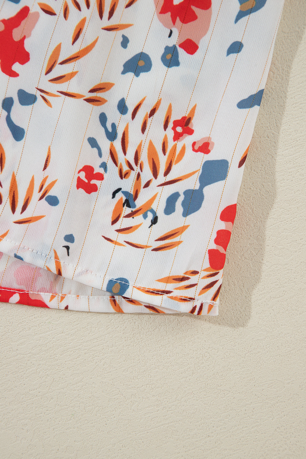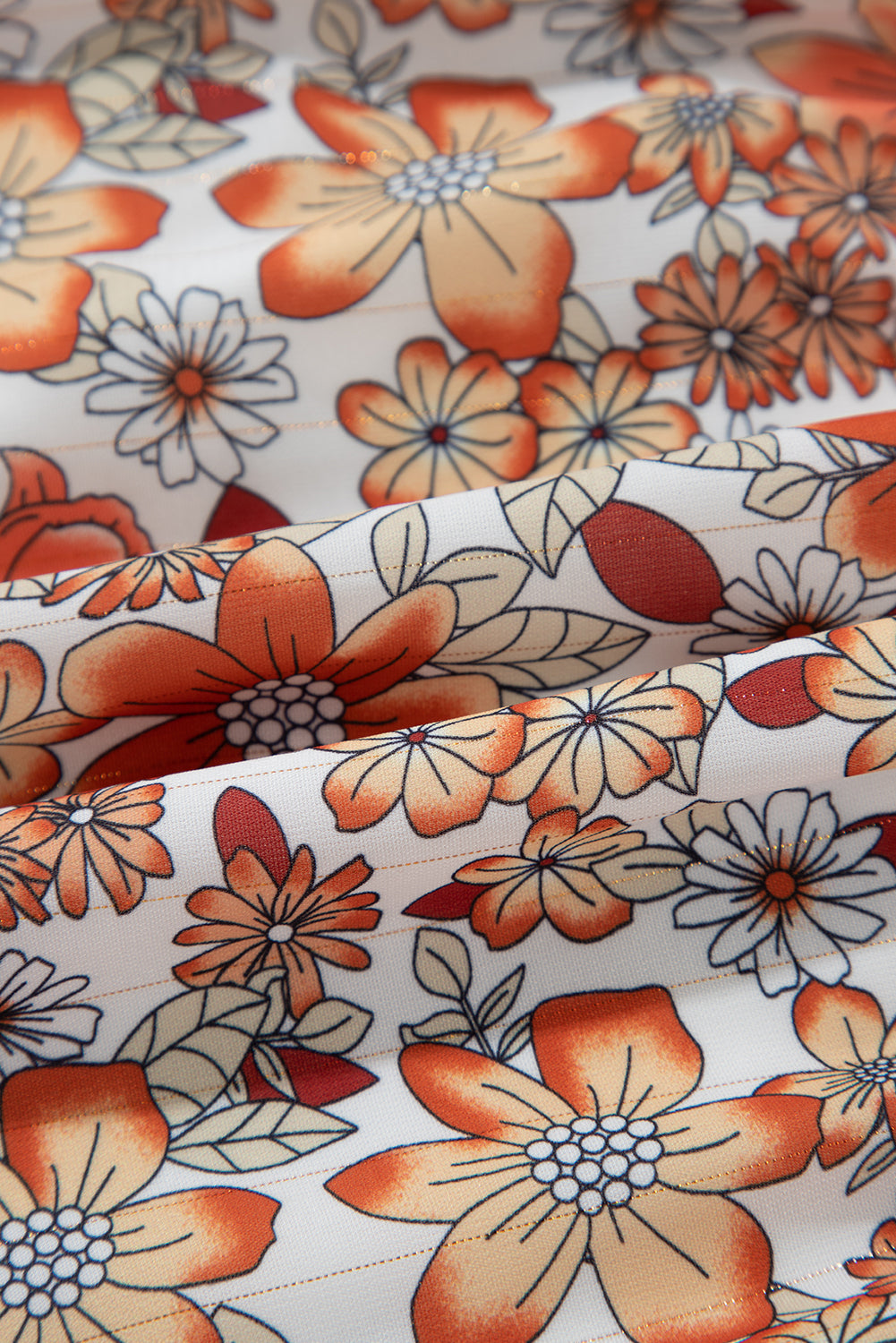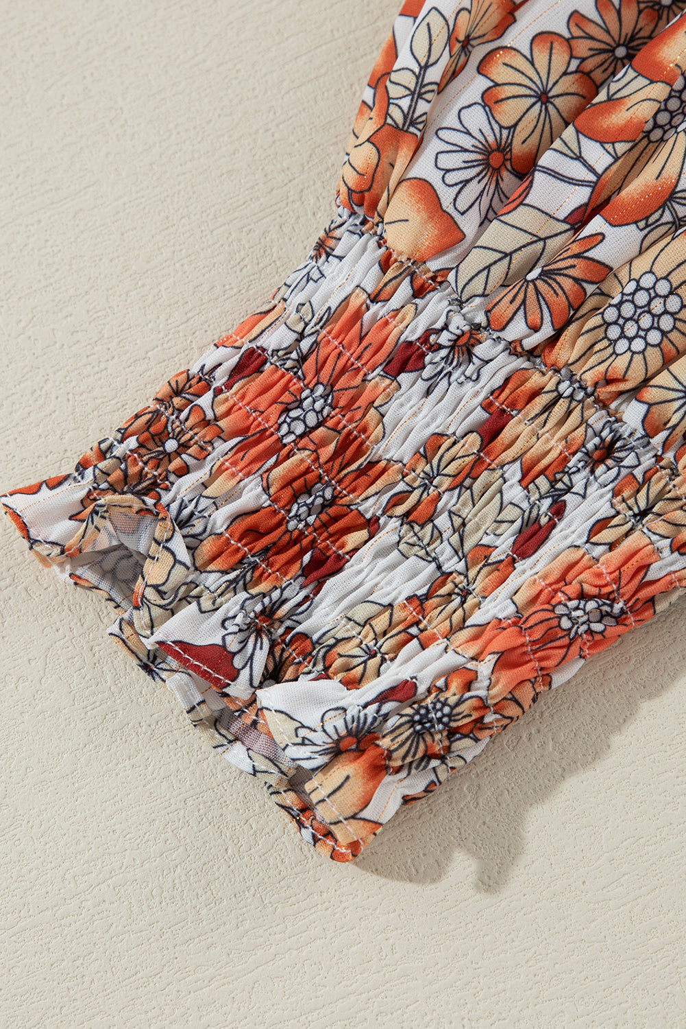 Khaki Floral Print Ruffled Tiered Long Sleeve V Neck Midi Dress