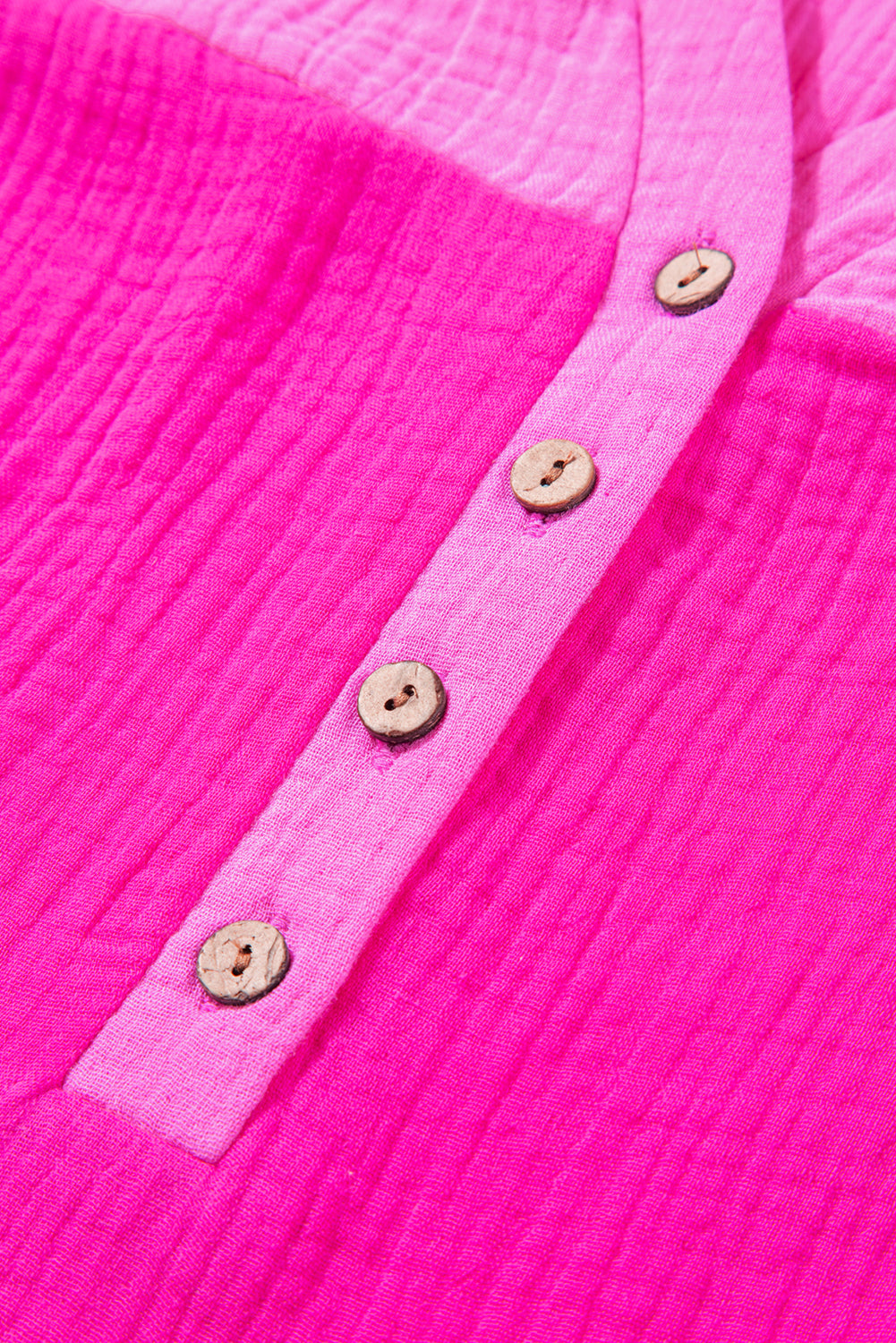 - It features a split v neck with buttons, sweet puff sleeves, and an ultra-loose fit