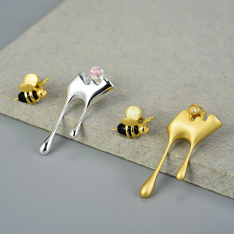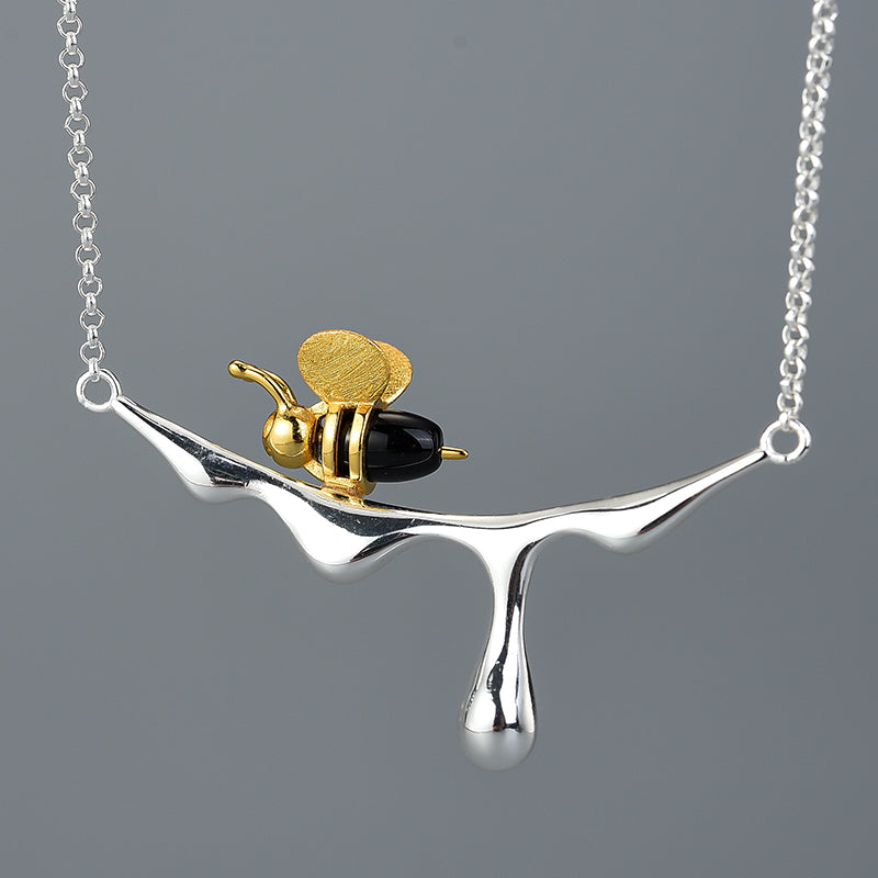 Pure 925 sterling Silver Agate Bee and honey statement jewelry set