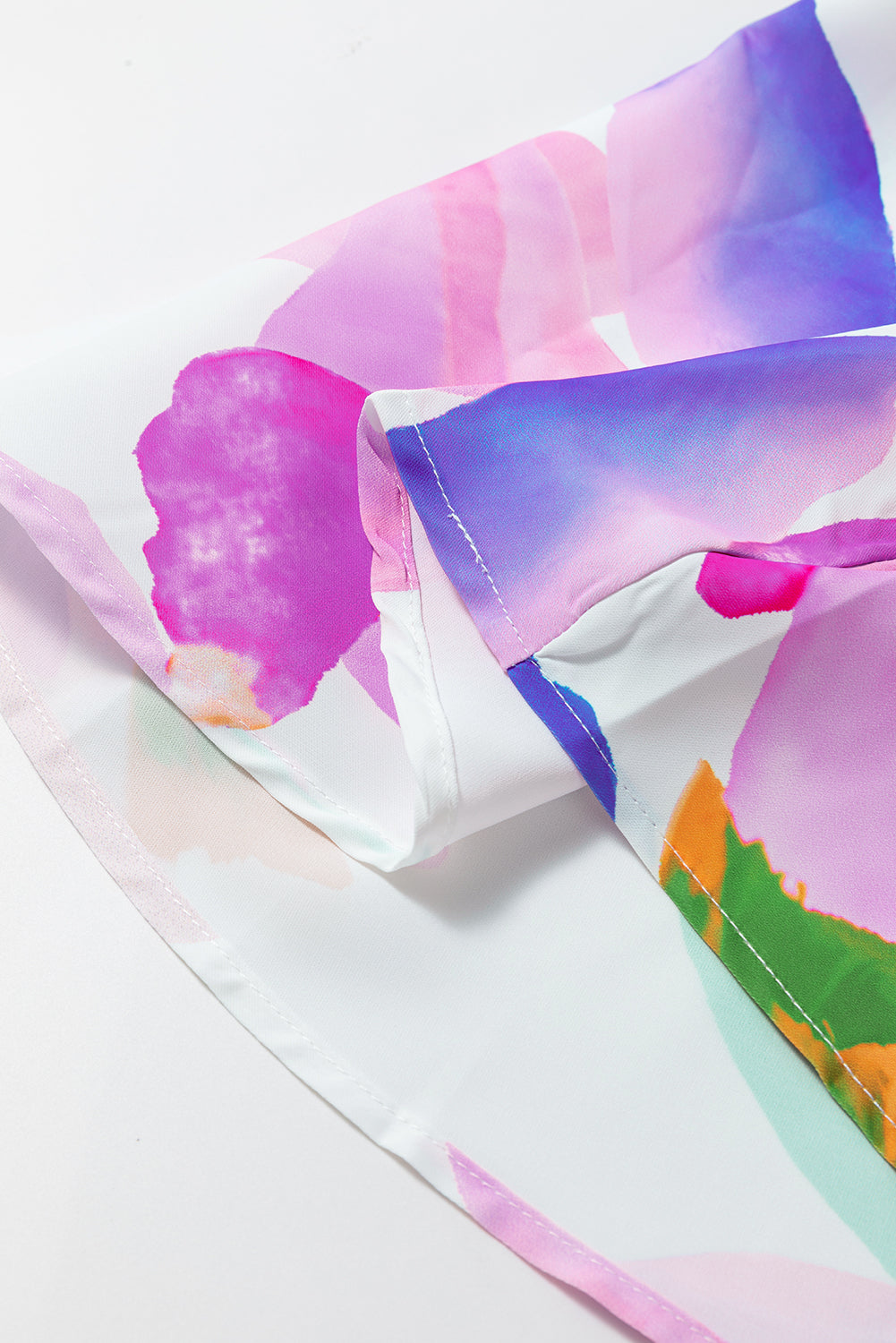 Purple Abstract Print Puff Sleeve Smocked Back Midi Dress