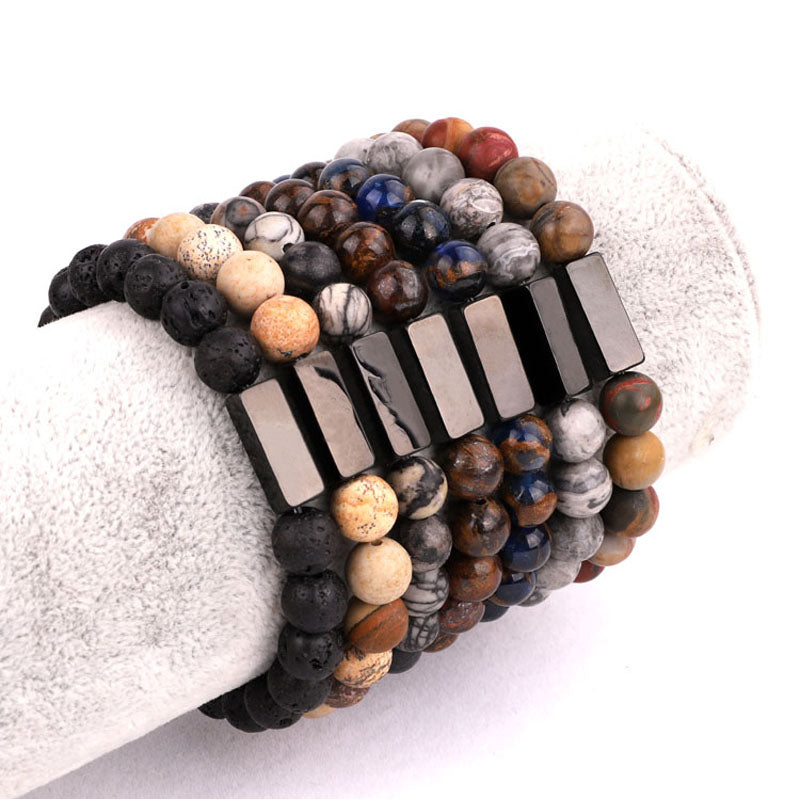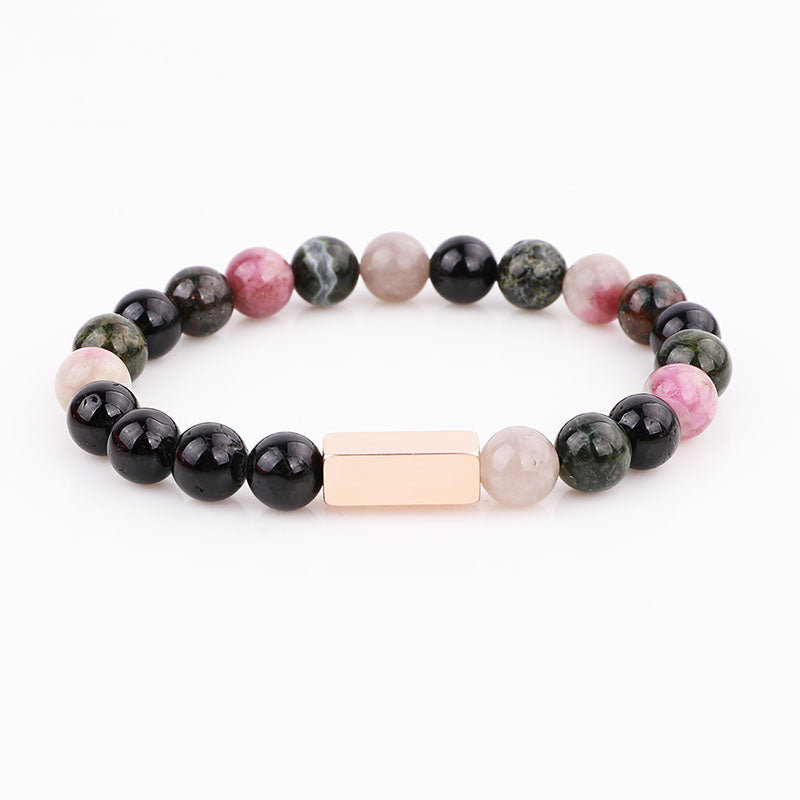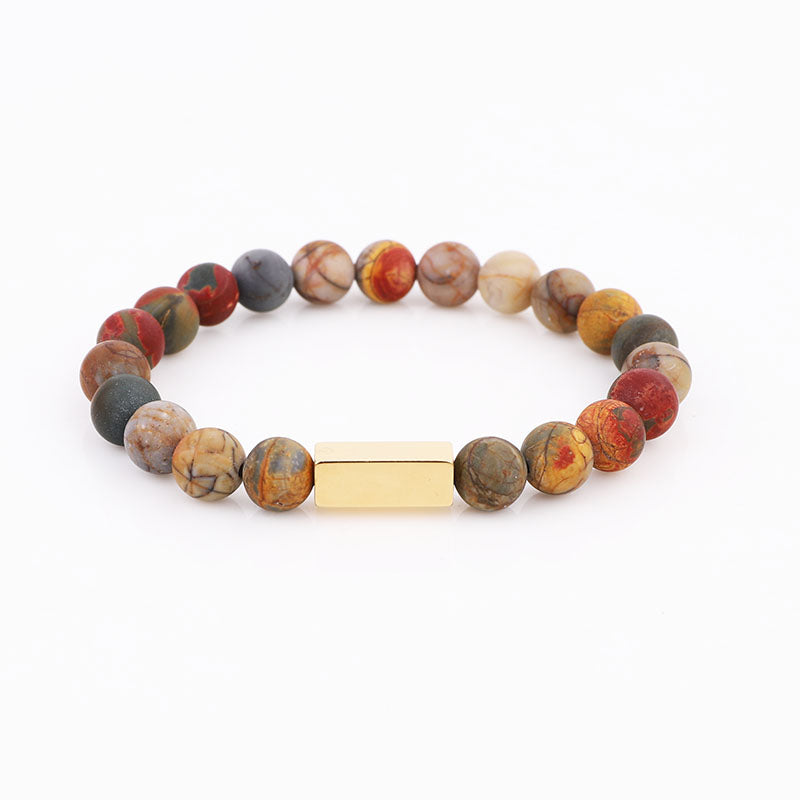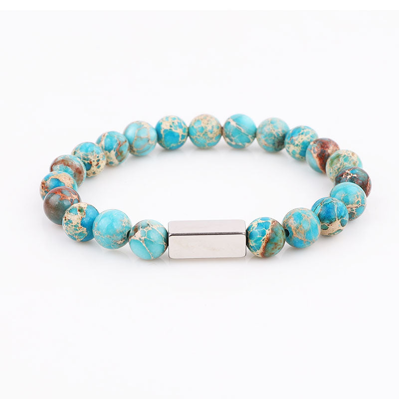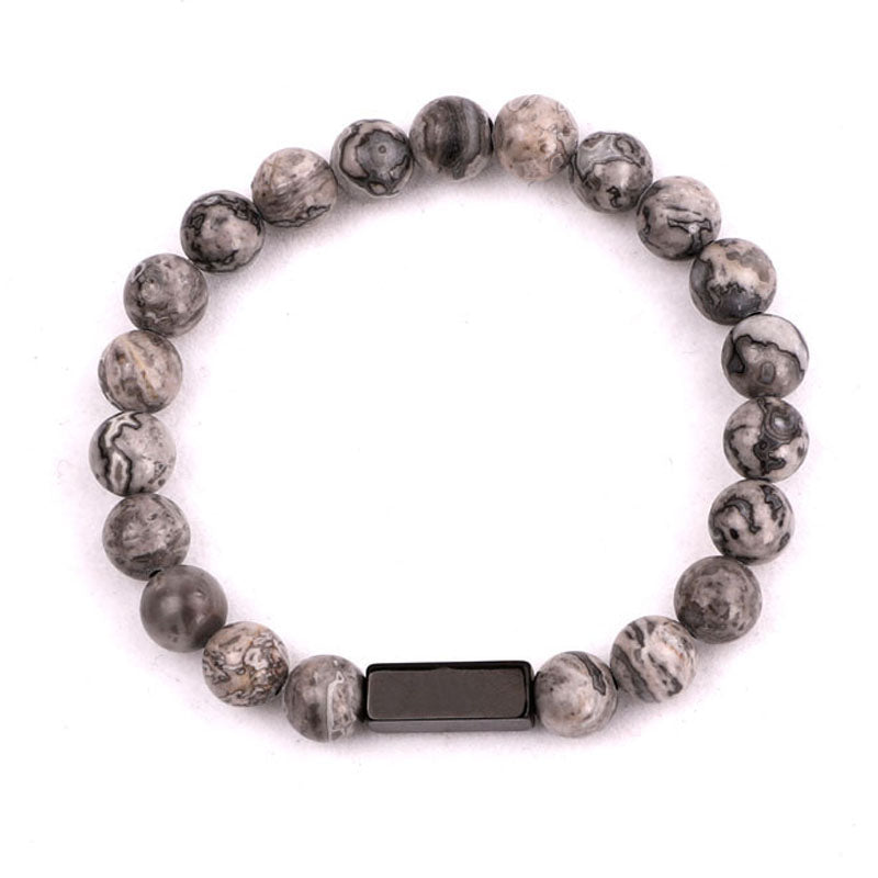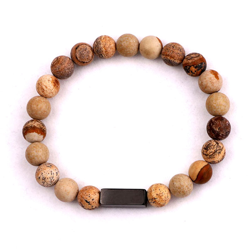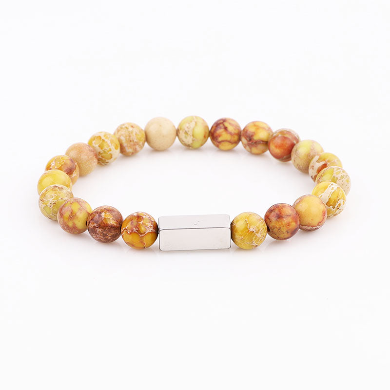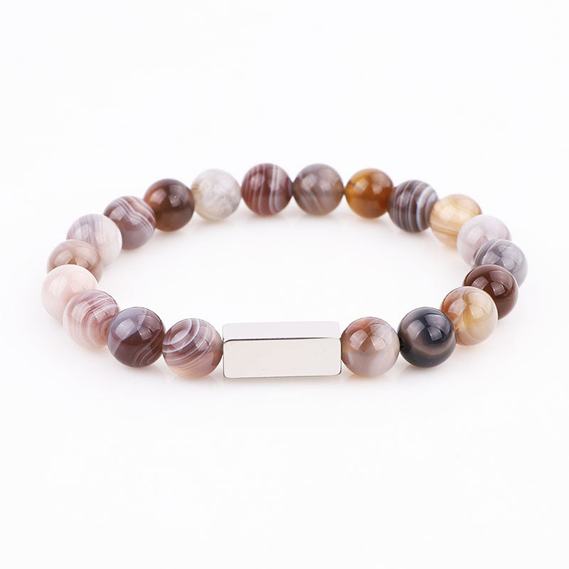 High Quality Natural Stone Stainless Steel Custom Logo Beads Bracelet Men