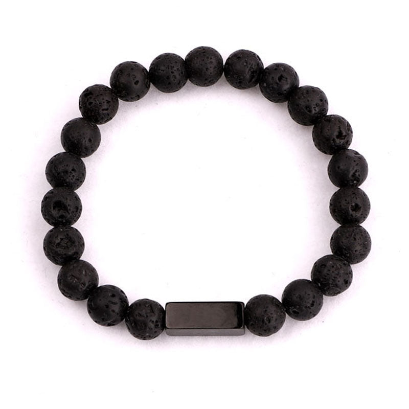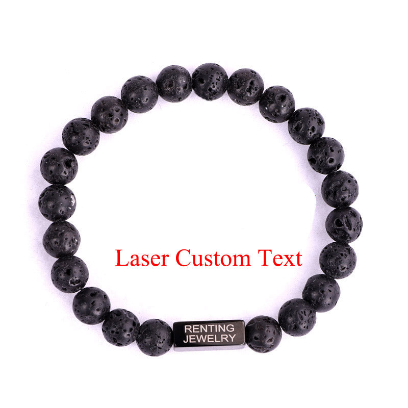 Renting Jewelry Making Custom Text Engrave Logo Stainless Steel Charm Natural Stone Beads Bracelet For Men