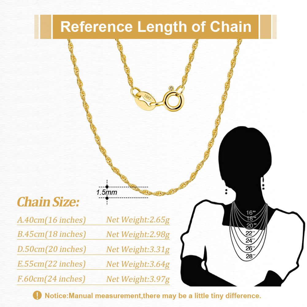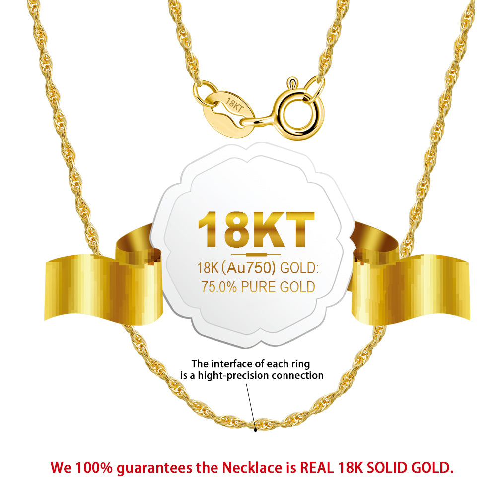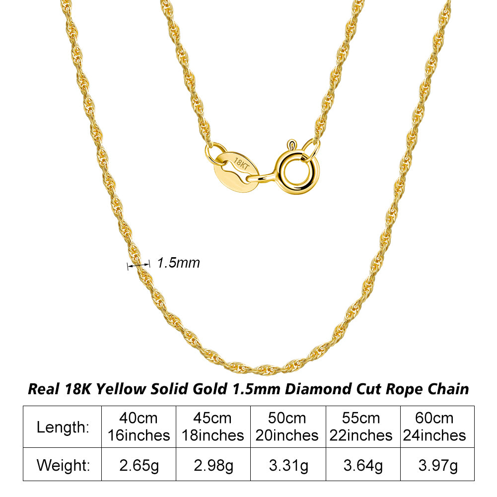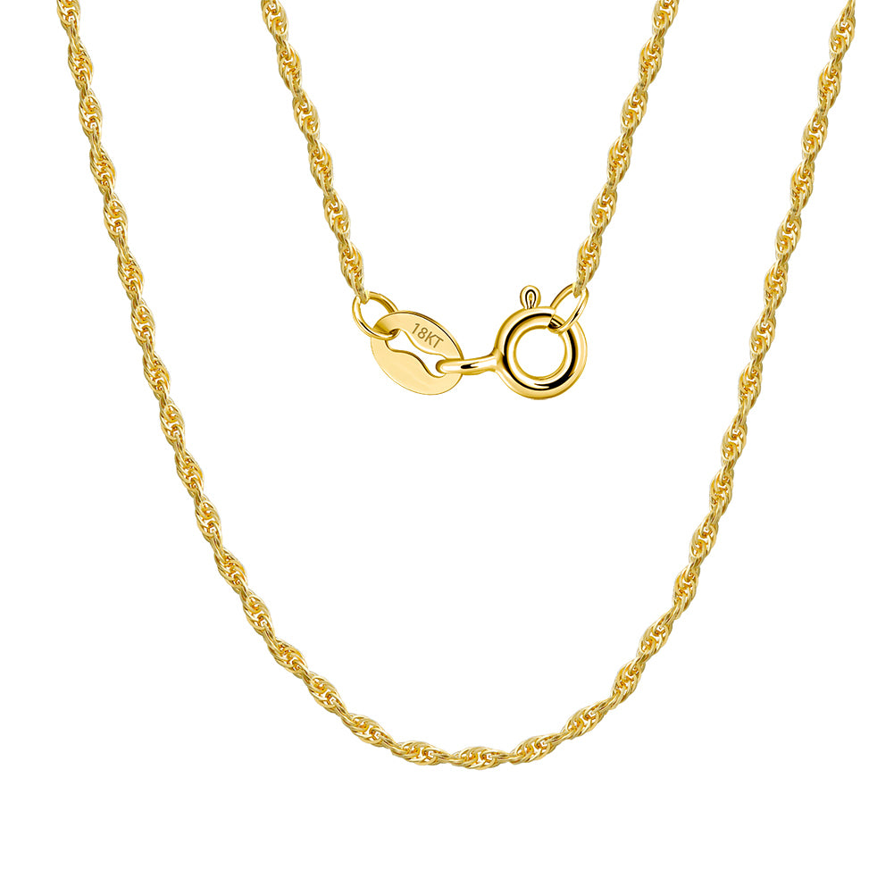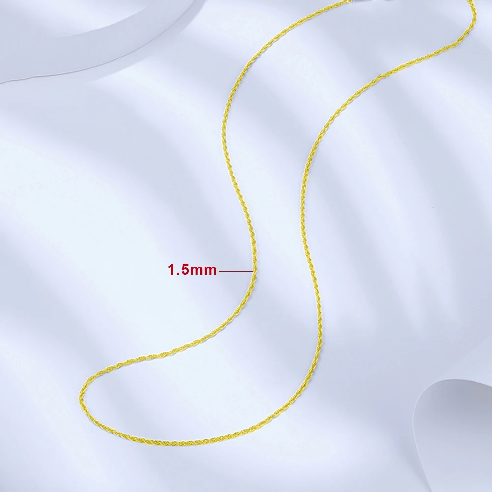 RINNTIN EC08 Hip Hop 18K Gold 1.5mm Diamond Cut Rope Chain Choker Necklace for Men Women Pure Gold Jewelry