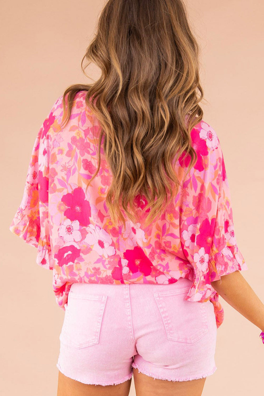 - The ruffled half sleeves add a playful touch to this charming blouse