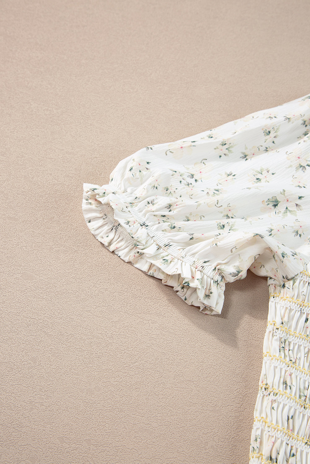 White Frilly Shirred Bodice Tiered Floral Maxi Dress