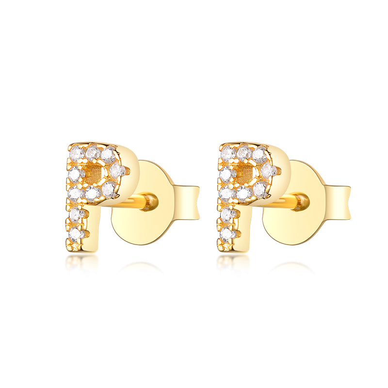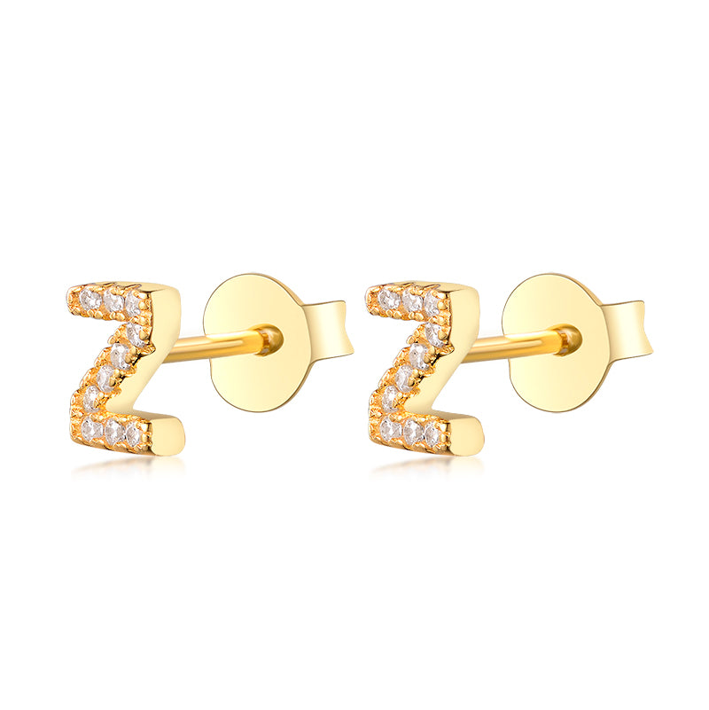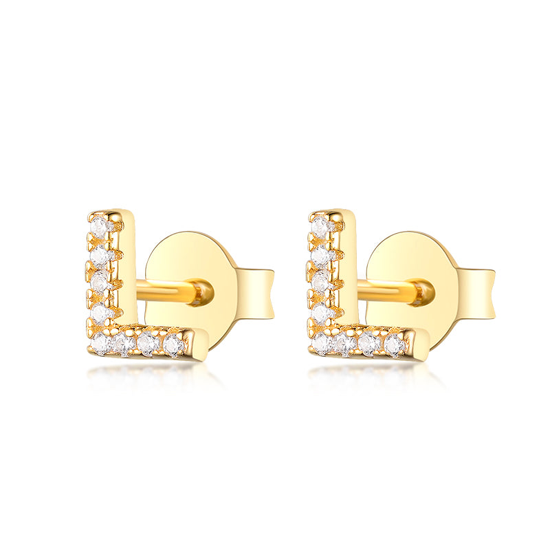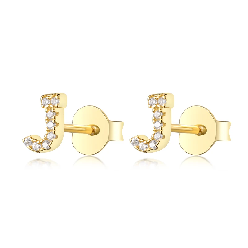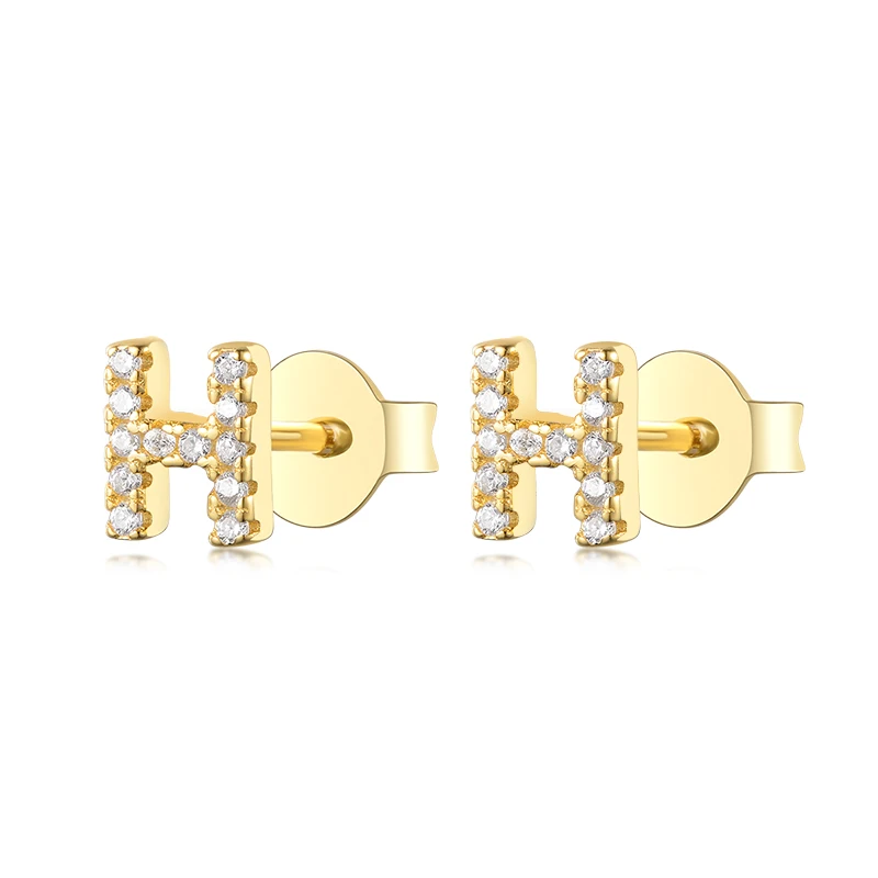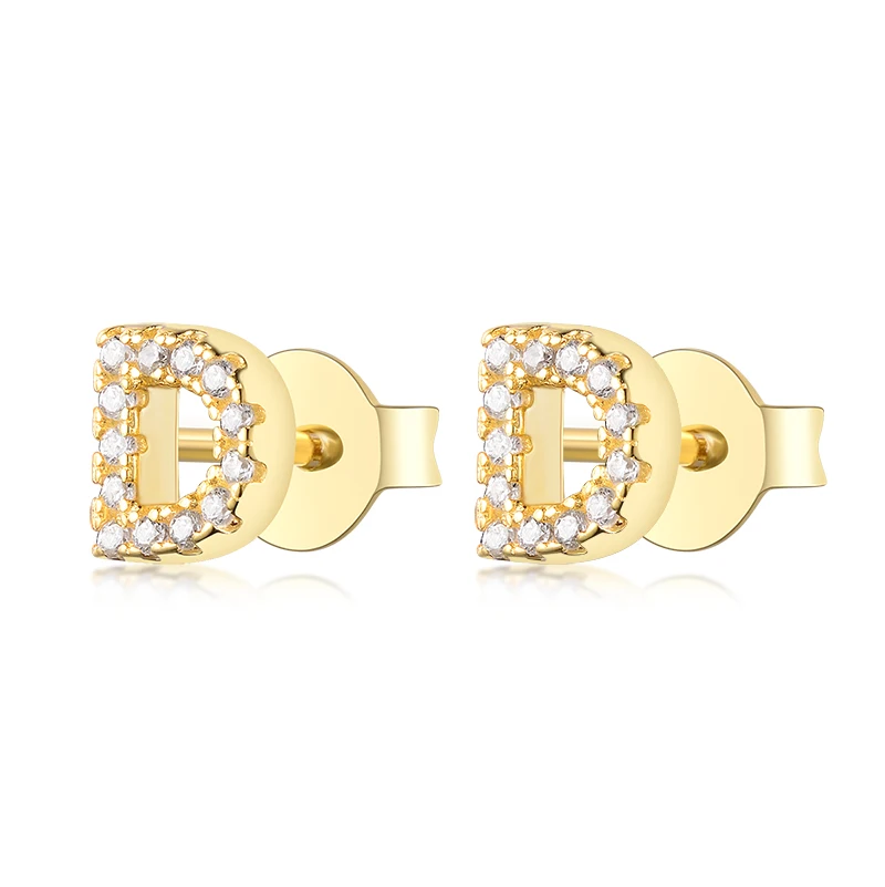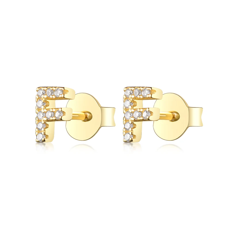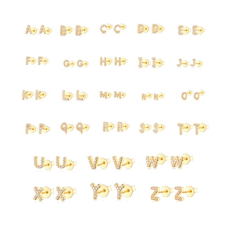 925 Sterling Silver 18K Gold Color Letter Alphabet Stud Earrings
