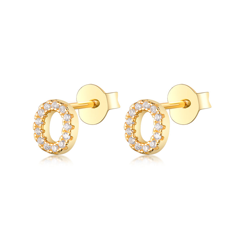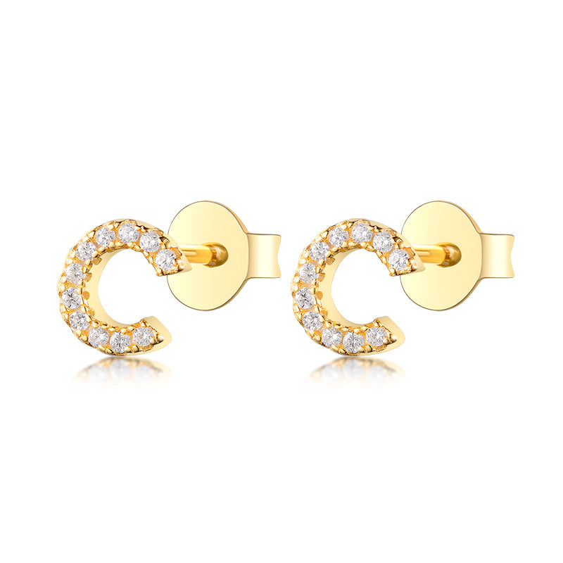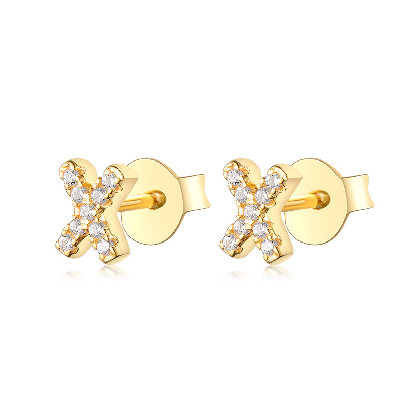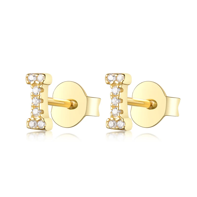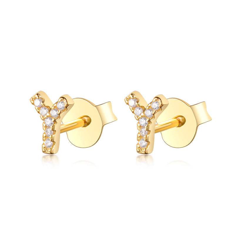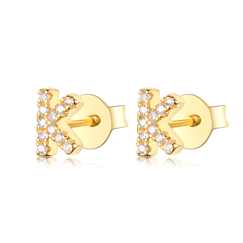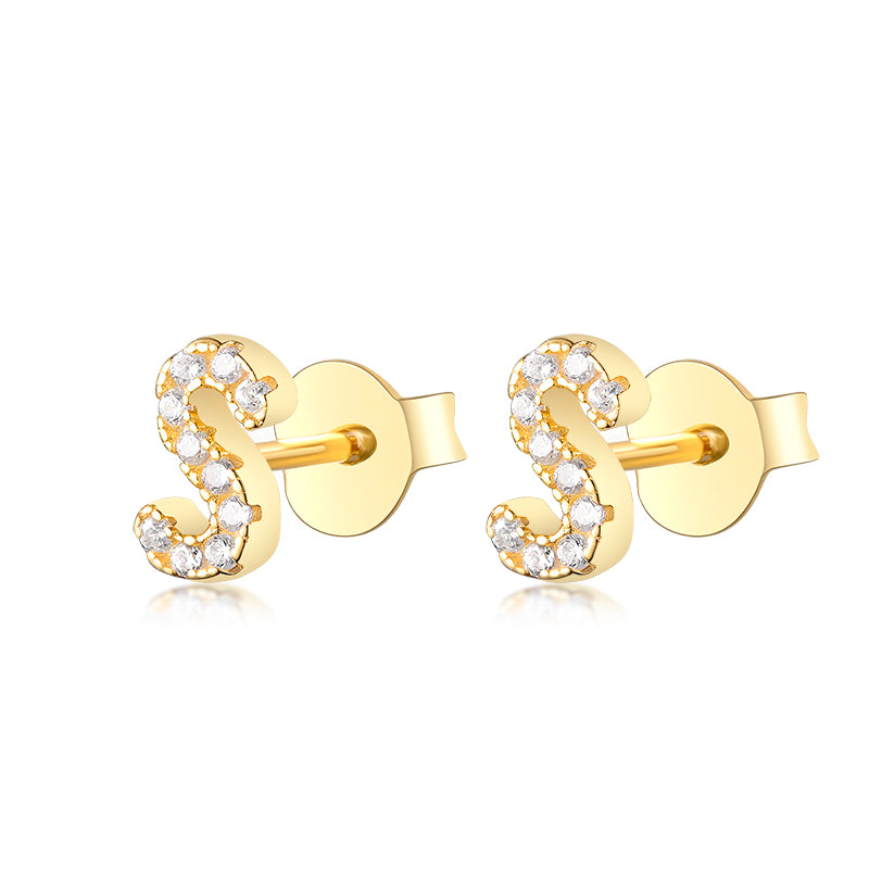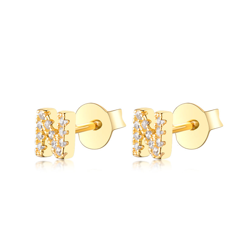 925 Sterling Silver 18K Gold Color Letter Alphabet Stud Earrings